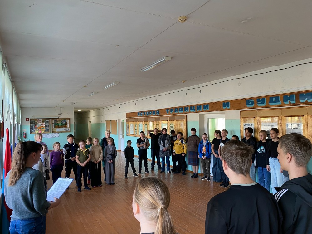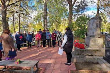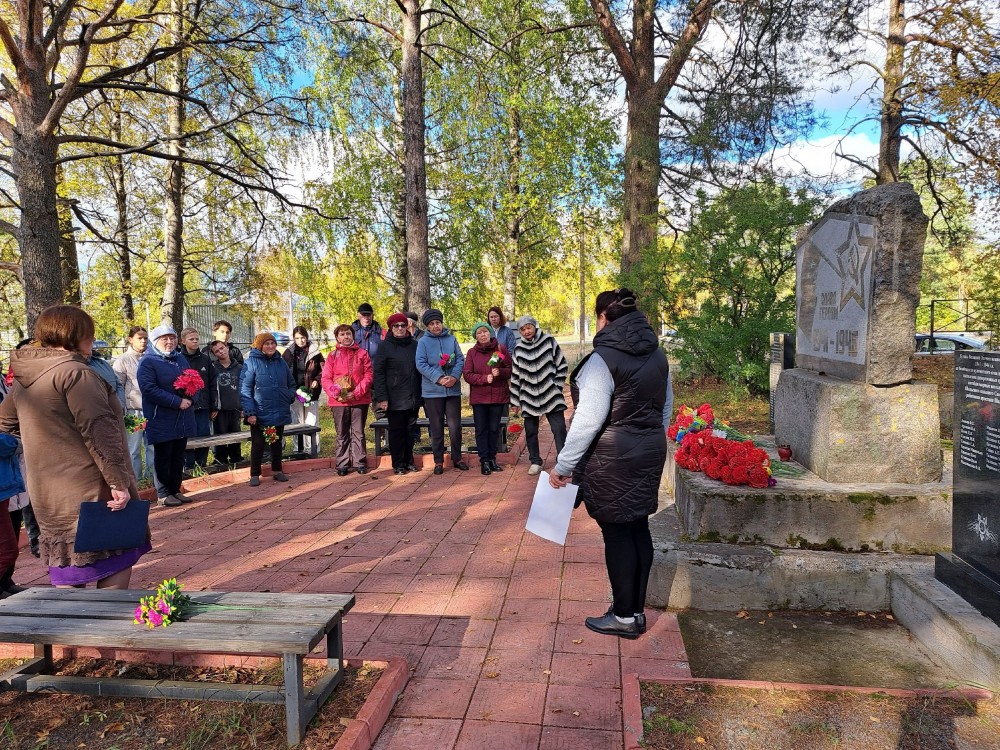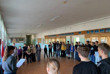 В школе прошла минута молчания и ученики 6-7 классов вместе с педагогами приняли участие в общепоселковом митинге у Братских могил.